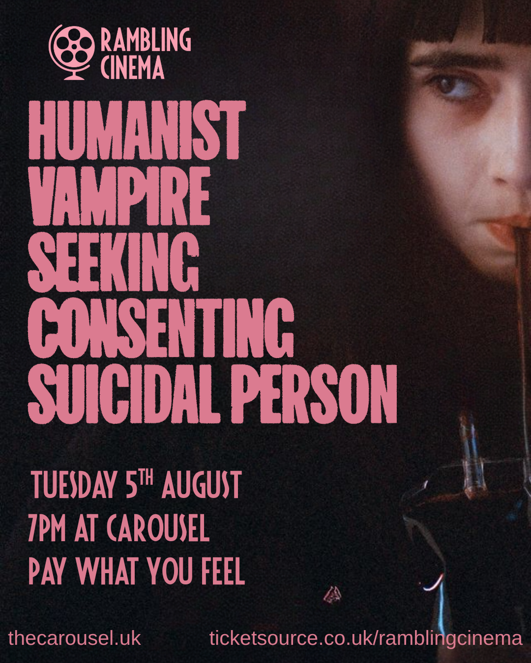 Easily the longest title we've had for a film so far, Humanist Vampire Seeking Consensual Suicidal Person is a touching coming-of-age story and a witty black comedy. It's basically French-language What We Do In The Shadows! All tickets are pay what you feel.